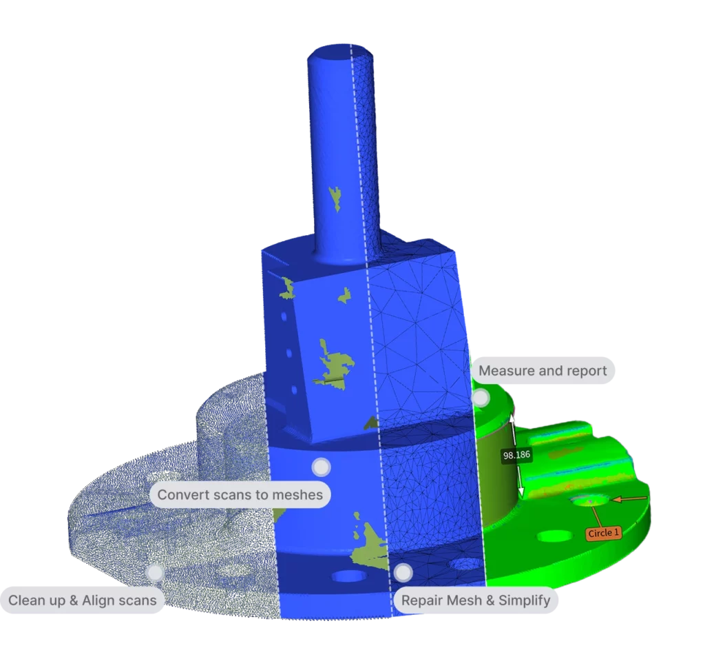 Import scan data from LiDAR, laser, structured light, or photogrammetry in standard mesh and point cloud formats (.stl, .obj, .ply, .e57, .las, .laz, etc.).