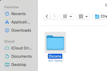 In the selection window, navigate to the folder with your DICOMs. Scans typically include hundreds of files, not a single file. We will handle the entire folder with the slices you want to change. After selecting the folder, click ’Upload.’