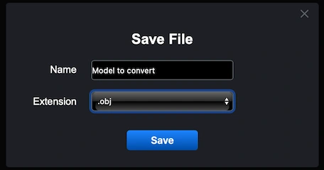 After clicking ‘Export’, the ‘Save File’ dialog will appear. Rename the file whenever needed and open the ‘Extension’ dropdown list. Choose .obj as the output format. MeshInspector will then carry out the OFF-to-OBJ conversion, generating an OBJ file for your workflows.