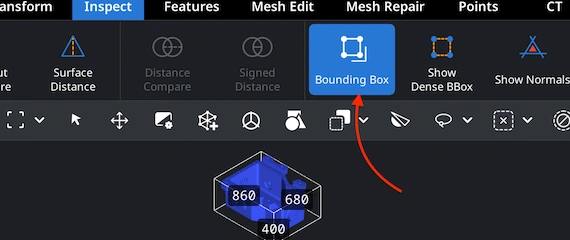 Once your OBJ file is exported, reopen it in MeshInspector to verify the dimensions. Navigate to the ’Inspect’ tab and enable ‘Bounding Box’ to calculate and display the OBJ model’s overall size. This measure helps ensure you receive the very outcome you anticipate.