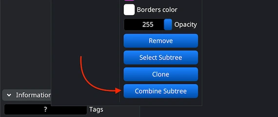 If your future project contains multiple meshes to keep together, it is best to unite them first. In the Scene Tree, highlight all the elements, group them, then right-click the group to select ‘Combine Subtree.’