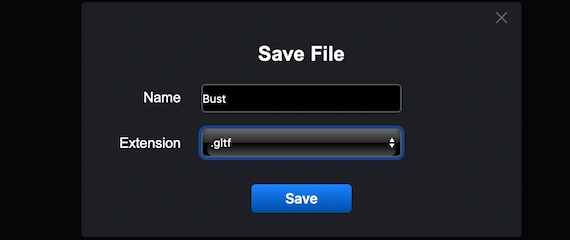 After selecting the ‘Save Scene As’ route from the ‘Home’ tab, a ’Save File’ dialog will appear. Here, MeshInspector’s end-users can, first, assign a new name to your future GLTF project, and switch the output format to GLTF before confirming the save.