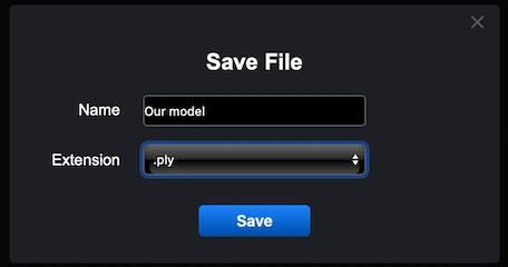 After clicking ’Export,’ a ’Save File’ dialog will appear. You can rename your file if needed and open the ’Extension’ dropdown to pick the correct output format. Choose .ply from the list, then press ’Save.’ MeshInspector will generate a single PLY file from your GLTF model.