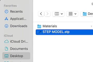 A file browser window will appear. Find your .stp file, click on it, and confirm your selection with ‘Upload’ or by double-clicking the filename. Our program will display it.