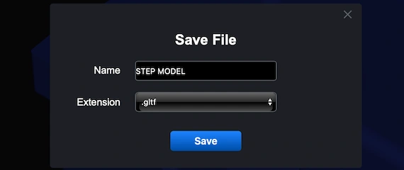 After clicking ‘Save Scene As’, the ‘Save File’ dialog will appear. Here, you are free to rename your project and switch the format to GLTF before confirming the save.