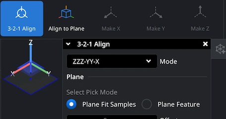 The ‘3-2-1 Align’ under ‘Transform’ tool makes it possible for users to position their GCODE models precisely within the coordinate system. This method is commonly used in 3D workflows to define a stable orientation based on three reference steps: a primary plane (3 points), a secondary direction (2 points), and a final axis constraint (1 point). In MeshInspector, this workflow allows you to correct toolpaths that were exported in an unexpected orientation or to prepare them for comparison, analysis, or downstream processing.