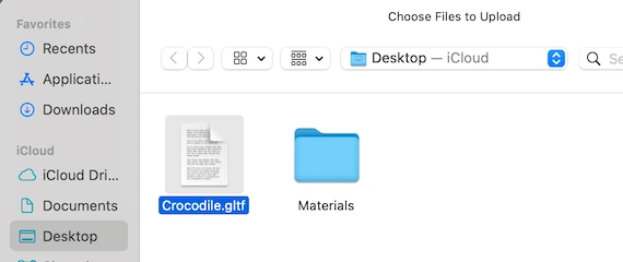 Locate the folder containing your GLTF file to read. Double-click it or confirm the choice using ’Upload.’ The MeshInspector program supports large GLTF projects, containing asset-specific information. The program will unpack and read all that.