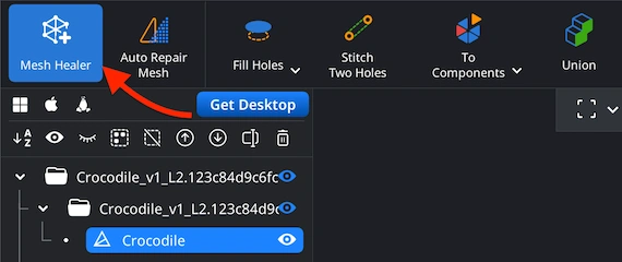 As with any format, issues like non-manifold geometries, holes, or inverted normals, etc., may always occur. To assess the integrity of your GLTF, open ’Mesh Healer’ under the ’Mesh Repair’ section. The utility analyzes your GLTF and highlights problem areas.