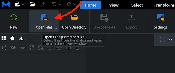 Go to the ’Home’ tab and click ’Open Files.’ Select your OBJ file to load it into the MeshInspector program. Once chosen, the program imports the geometry and prepares it for display, no matter how many polygons your mesh contains.
