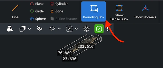 To review the dimensions of your OBJ model, open the ’Inspect’ tab and enable ‘Bounding Box’ with the mesh selected in the Scene Tree. MeshInspector will display the overall size of the OBJ model, helping one verify scale and proportions before further processing.