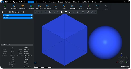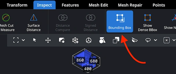 To quickly inspect the size of your model in an STL file, activate ‘Bounding Box’ under the ‘Inspect’ tab to view the STL model’s dimensions and volume. They will be displayed with precise accuracy for greater efficiency and convenience.