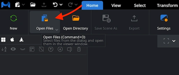 In the ’Home’ section, click on ’Open Files’ to initiate the viewing process. The MeshInspector program for 3D data allows to do so for any STL, regardless of its complexity, scale, and size.