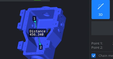For distance measurements, open ‘Features’ and activate ‘Measure Distance.’ Then click on points on the surface. The MeshInspector tool can calculate 3D distances as well as X, Y, and Z projections, which is great when you need to thoroughly review an STL file.