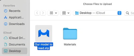 Navigate to the folder where your STP is stored. Then, either double-click it or confirm the choice with 'Upload.' The MeshInspector program for STP files can accept entire folders and zipped project archives. Thus, you can bring in complex datasets without any headache.