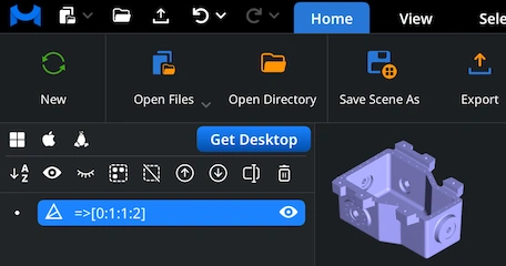Under the ’Home’ tab, choose ’Open Files.’ This will allow you to load your STEP geometry into MeshInspector to read it. Once selected, the program imports the STP file and prepares it for viewing, no matter how detailed the model is or how many components it contains.