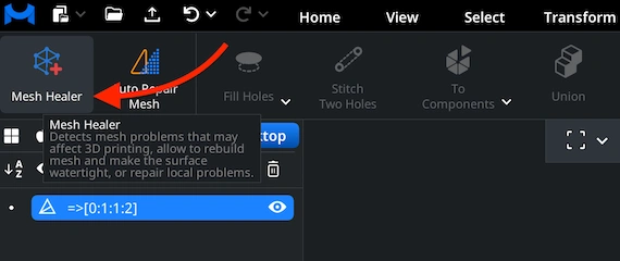 Any advanced program for reading STP files should offer more than simple viewing. MeshInspector fully meets this requirement. To verify the quality of your STP model, open ‘Mesh Healer’ under ‘Mesh Repair’ and review the model for potential issues.