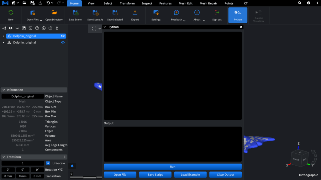 This means you can automate most manual actions — loading meshes, applying tools, adjusting parameters, and exporting results — without leaving MeshInspector.